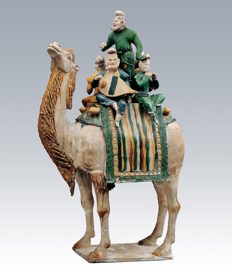 Tricolor-glazed pottery camel carrying musicians, Tang Dynasty