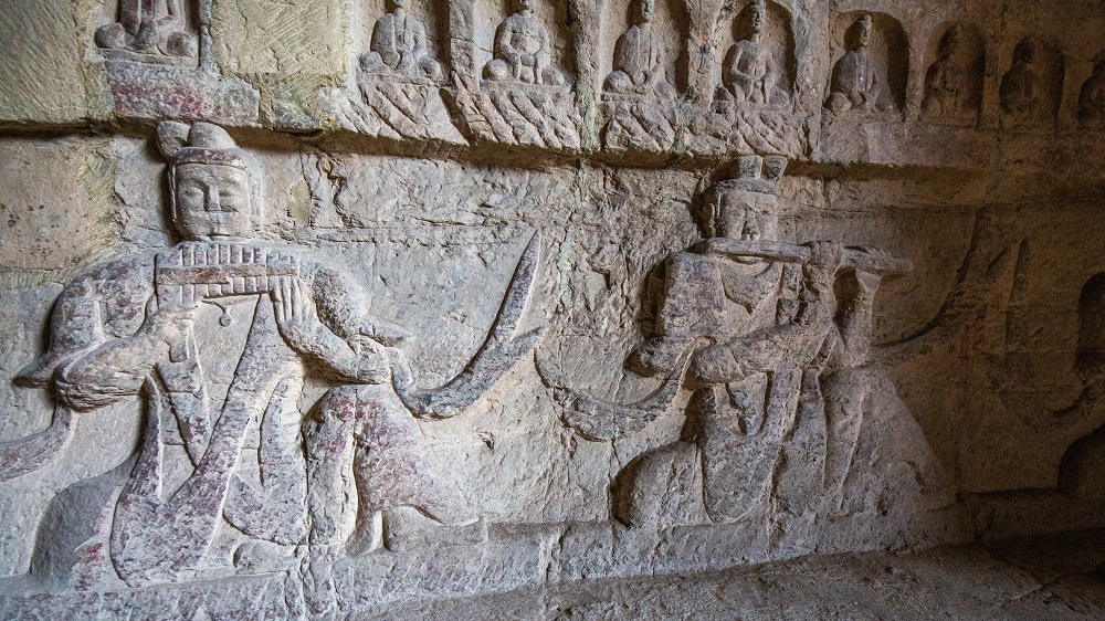 Located in Gongyi, Henan province, the Gongyi Grotto Temple stands at the foot of Dali Mountain. It was founded during the reign of Emperor Xiaowen (r. 471-499) of the Northern Wei Dynasty (386-534). The murals and reliefs in the temple portraying music activities are precious historical materials reflecting the music characteristics of the dynasty, a time when Buddhism was highly promoted through images of both celestial and human beings.