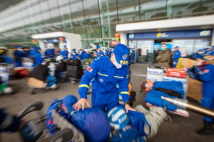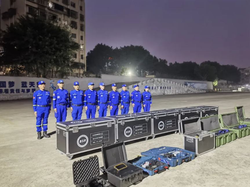 Assembled in Wanzhou district, Northeast Chongqing, this nine-member team left for Wuhan Tianhe International Airport to join other members of the BSR team, carrying rescue equipment such as thermal imaging equipment, drones, earthquake-breaking systems, radar life detectors, satellite ground stations, and satellite phones.