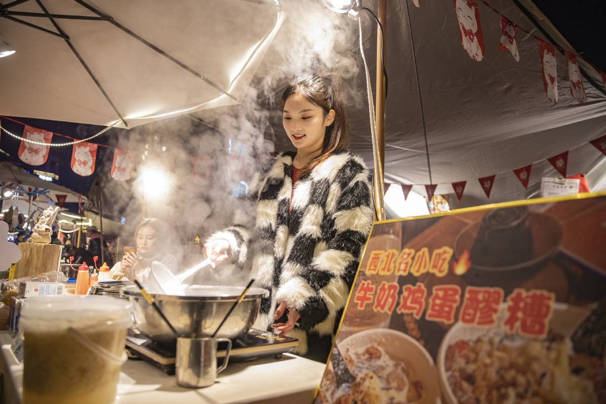 A vendor boils sweet dumplings at Yes! Bear market in Chongqing on Feb 9. [Photo/Xinhua]