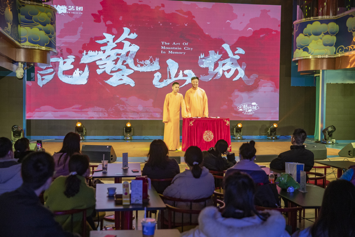 Audience watch a cross-talk show at Shibati traditional scene block in Chongqing on Feb 10. [Photo/Xinhua]