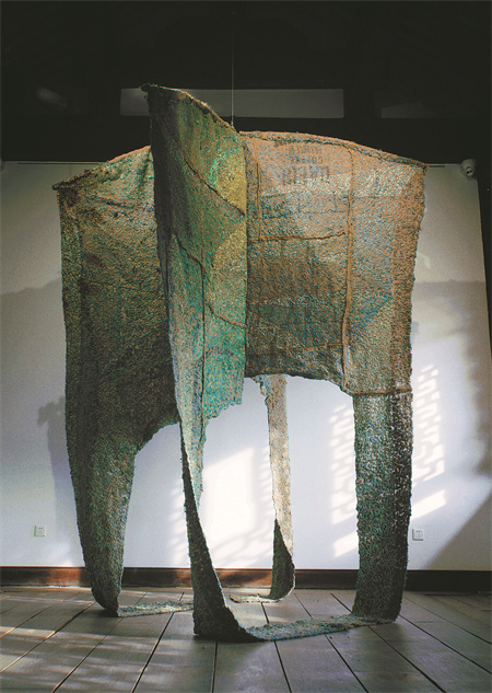 The exhibition, through to March 5, is the first biennale of contemporary material art mounted by Tsinghua University. It is being held at the Nanchizi Art Museum, a compound in the classic Chinese garden-style that comprises wooden windows, pavilions, long corridors, pools, strange hollow stones, courtyards and other structures to remind visitors of a serene residence in Suzhou, Jiangsu province. The space showing cultural traditions and the contemporary artworks on display have created a special chemistry.