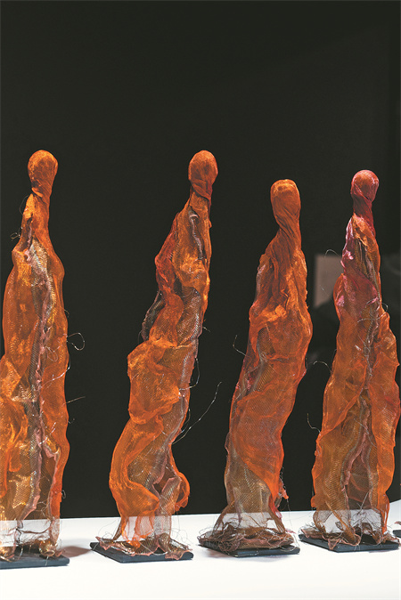 Fibers, such as cotton, are a favored material for several artists at the exhibition. Jo Hamilton, born in Scotland and now living in Portland, the United States, worked for a social service organization for the elderly for some 14 years. She knitted portraits of woolen threads for the elderly under her care. The works from this series are on show in Beijing.