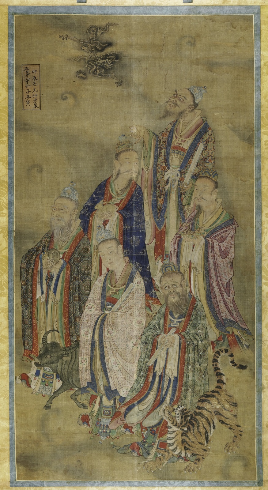 Zodiac animals have been popular in China since the Northern and Southern Dynasties (420-589). This Ming Dynasty (1368-1644) painting depicts six of the 12 Chinese constellation gods – all men – in long robes with wide sleeves. They are personifications of six zodiac animals: the rat, ox, tiger, rabbit, dragon and snake, which are also depicted in the painting.