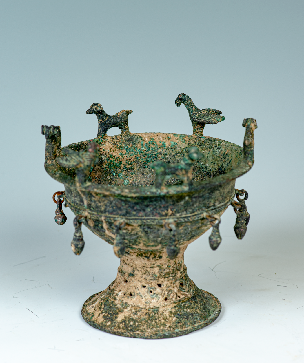 Bronze goblet or incense burner decorated with animals, BMAC (c. 2,100-1,800 BC) [Photo/Official WeChat account of the Tsinghua University Art Museum]
