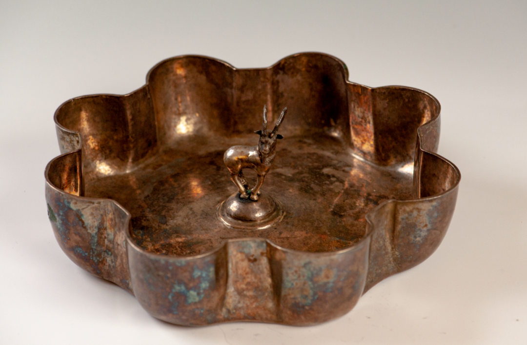 Silver bowl decorated with a goat, Parthia (3rd century BC-AD 1st century) [Photo/Official WeChat account of the Tsinghua University Art Museum]