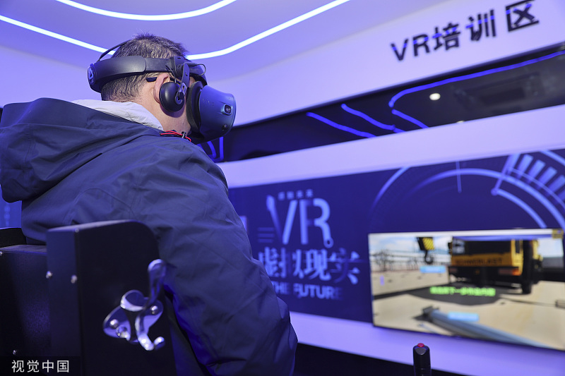 A man experiences VR training in Nanjing, Jiangsu province, on Feb 13, 2023. [Photo/VCG]