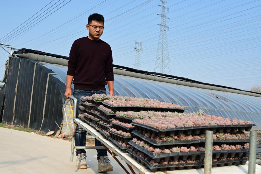 Zhang Xiangfu sends succulents to a wholesaler. [Photo provided to chinadaily.com.cn]