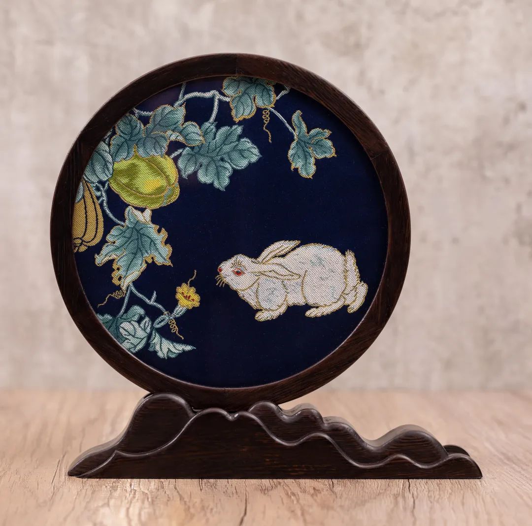A brocade ornament decorated with rabbit [Photo/Official WeChat account of the Nanjing Yunjin Brocade Museum]