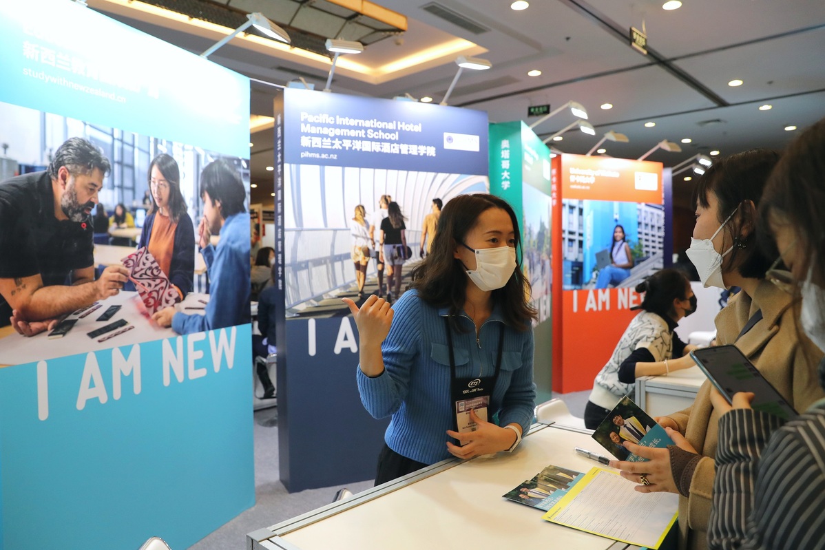 Participants visit the exhibition section for New Zealand at the China Education Expo, part of the 23rd China Annual Conference and Expo for International Education, at the Beijing International Convention Center on Feb 17, 2023. [Photo by Wang Zhuangfei/chinadaily.com.cn]