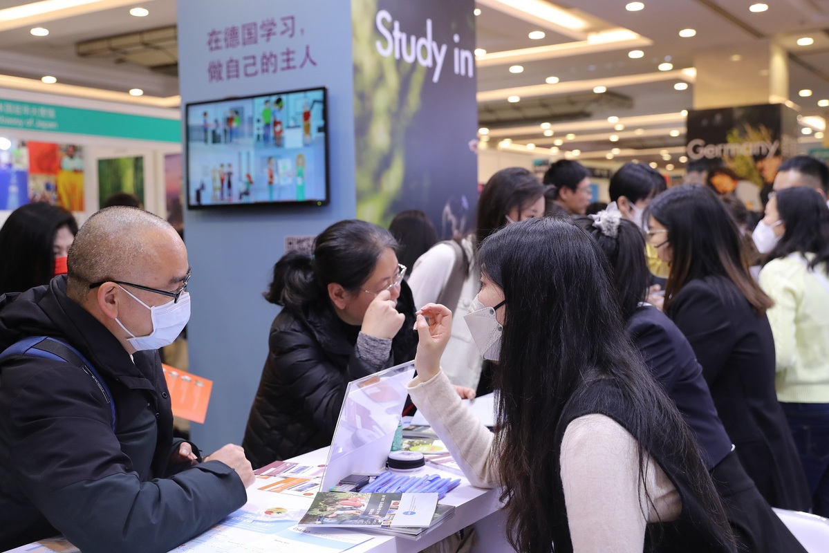 Participants visit the exhibition section for Germany at the China Education Expo, part of the 23rd China Annual Conference and Expo for International Education, at the Beijing International Convention Center on Feb 17, 2023. [Photo by Wang Zhuangfei/chinadaily.com.cn]