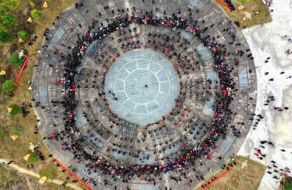 On Feb 21, Zhuang people played 300 bronze drums in Maguai Square of Baying village to celebrate Maguai Festival. Foreign visitors learned to play the drums and joined in.