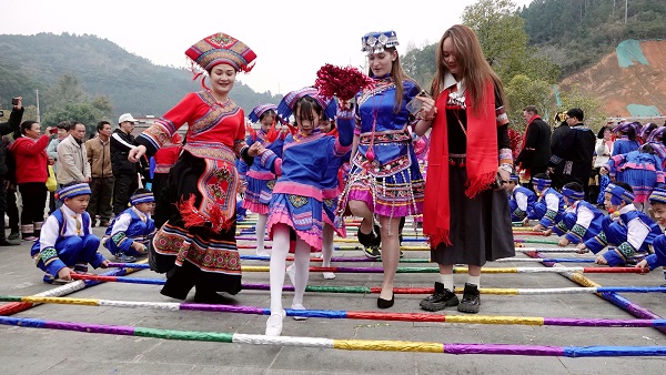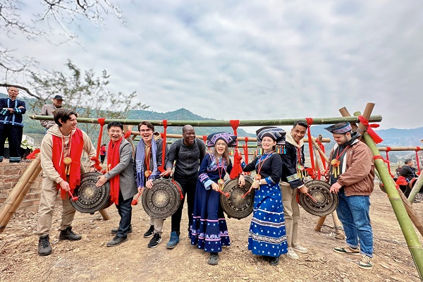 A group of 11 international teachers and students from the United States, Iran, Kazakhstan, Cambodia, Bangladesh, South Africa and Nigeria traveled to Donglan county in Hechi, Guangxi Zhuang autonomous region to experience the Maguai Festival celebrations from Feb 19 to 21.
