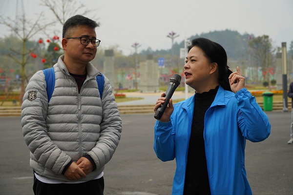 Kong (R) introduced the Hechi Garden Expo Park to guests on Feb 22. [Photo/guangxi.chinadaily.com.cn/hechi]