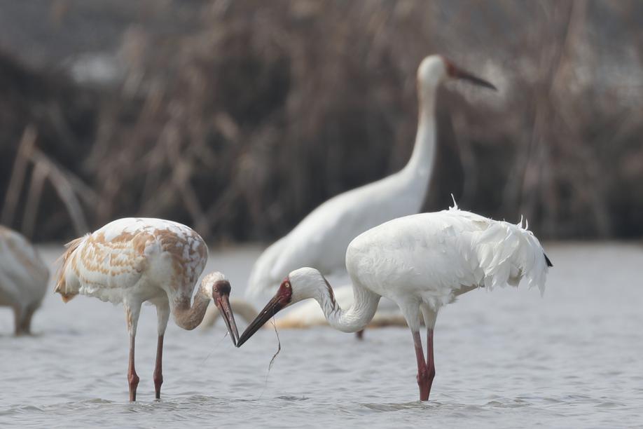 Large group of white cranes stops at Hunan reserve