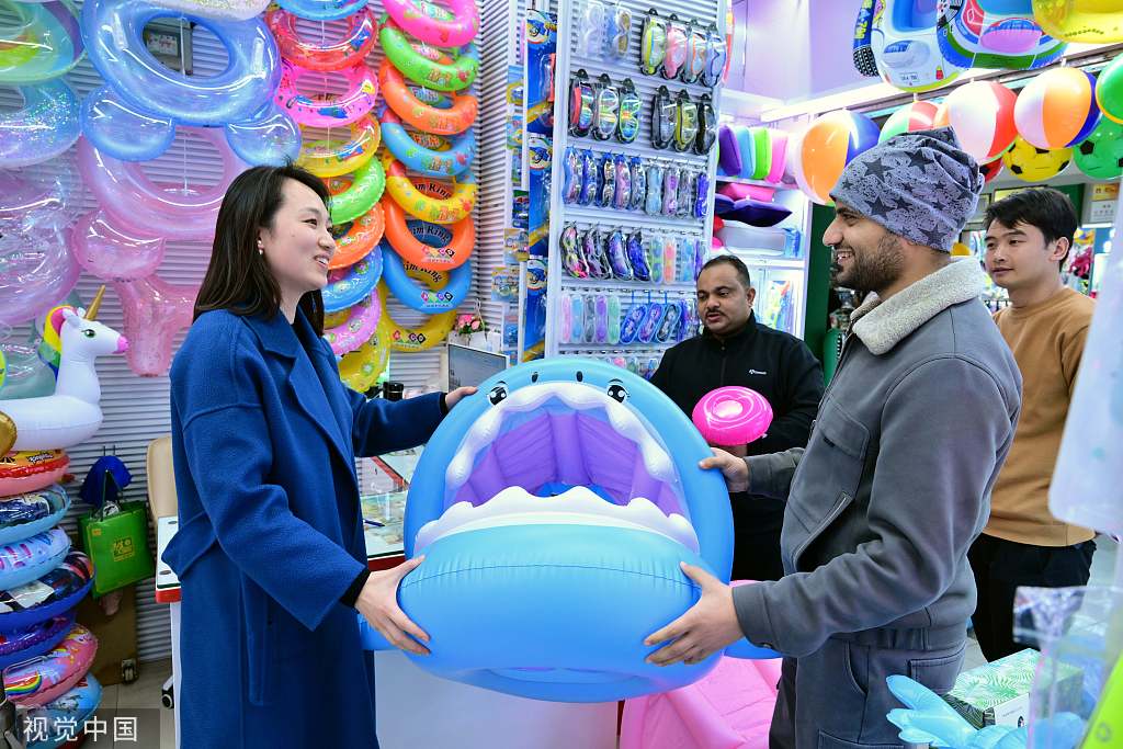 Customers from home and abroad are flowing to Yiwu International Trade City in Zhejiang province to place orders and purchase commodities.