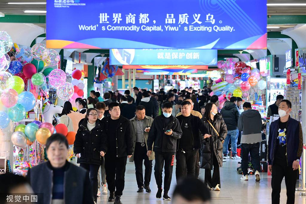 Visitors shop at the Yiwu International Trade City in Yiwu, Zhejiang on Feb 22, 2023. [Photo/VCG]