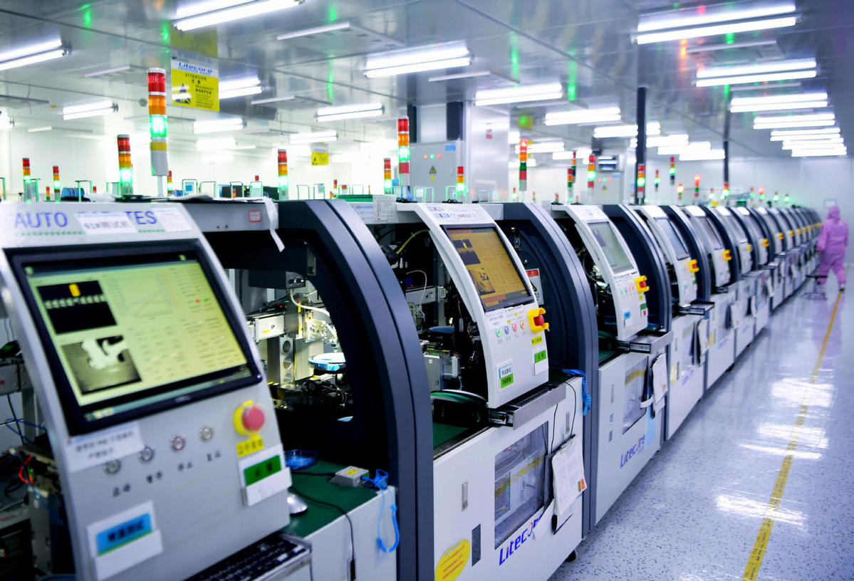 A worker inspects the chip production machines at a chip company in Quanzhou, Fujian province on Feb 23, 2023. [Photo/Xinhua]