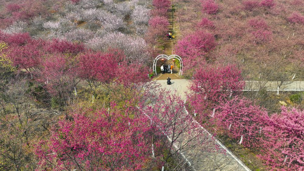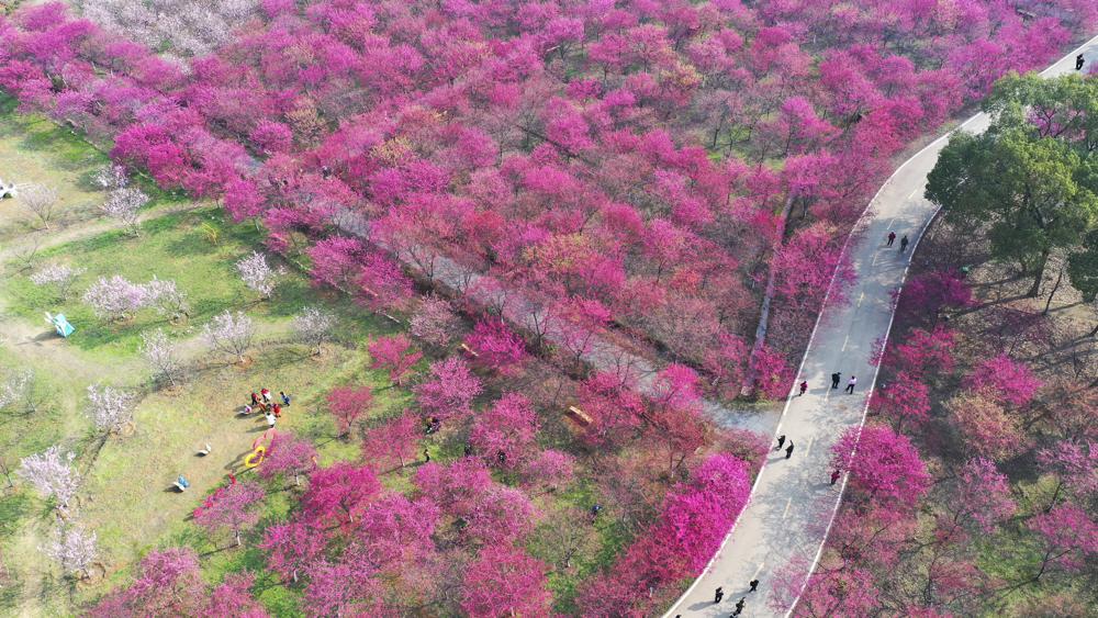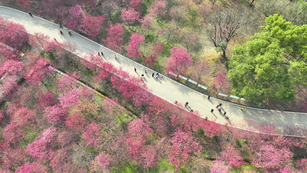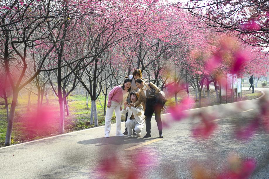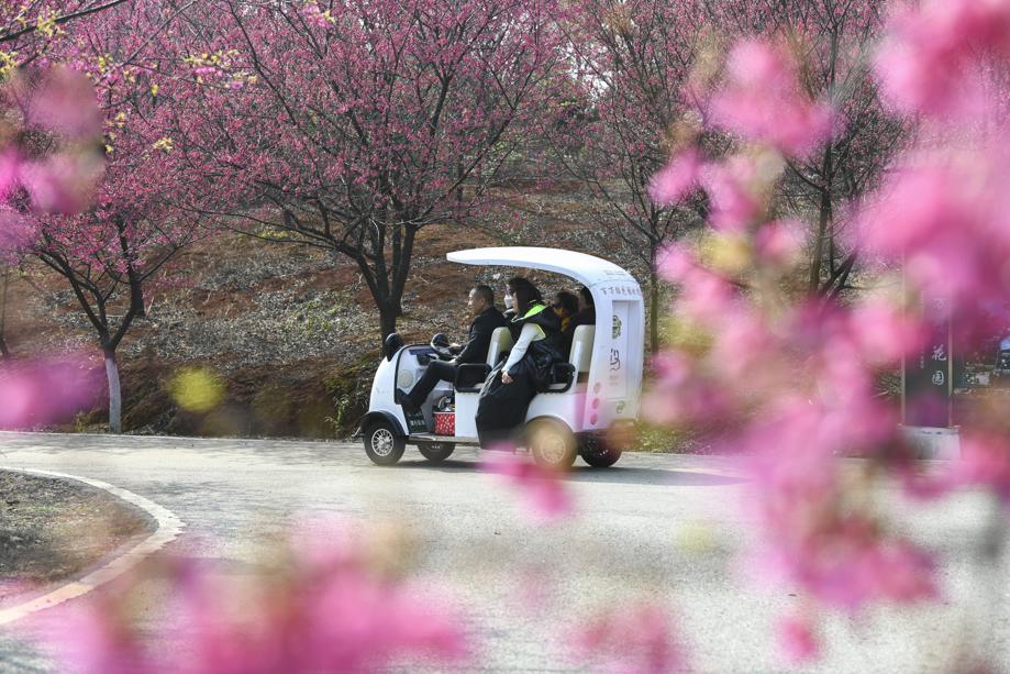Cherry trees blossom at a park in Luoqiao town, Changning, Hunan province, attracting many tourists. [Photos by Zhou Xiuyuchun/For chinadaily.com.cn]