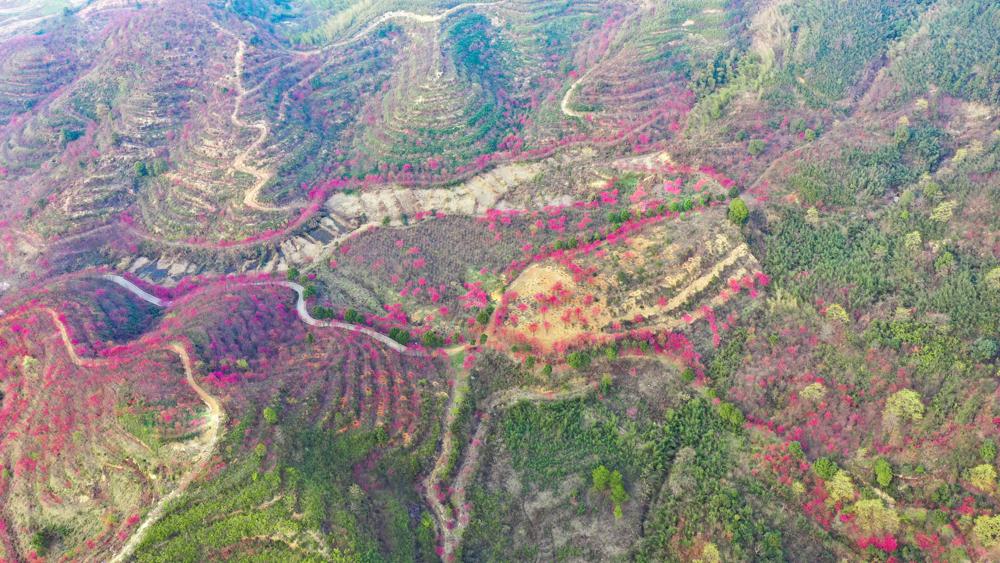The flowers illuminate the mountains with colors of pink and rose red. The blossom season will last until the end of March.
