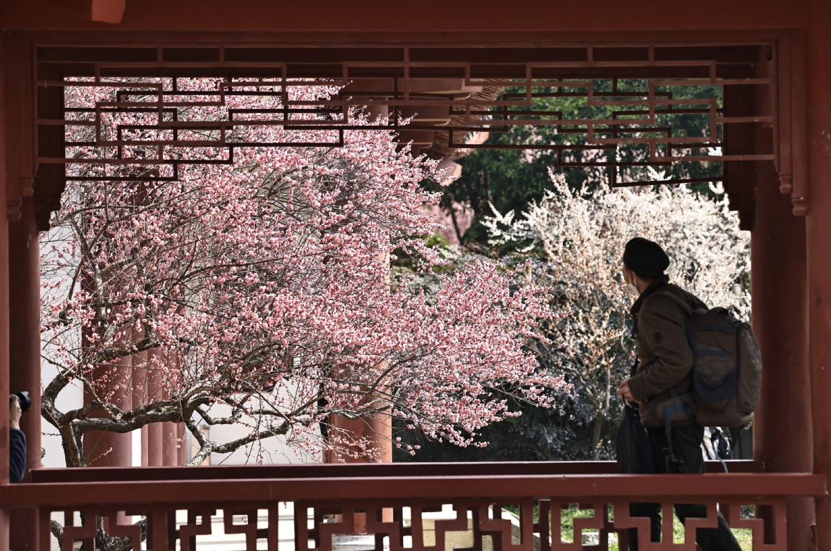 Visitors enjoy plum blossom in the East Lake Plum Garden in Wuhan, Central China's Hubei province, on Feb 24, 2023. More than 20,000 plum trees bloom in the garden, attracting tourists from all over the country to visit and appreciate the plum. [Photo by Zhu Xingxin/chinadaily.com.cn]
