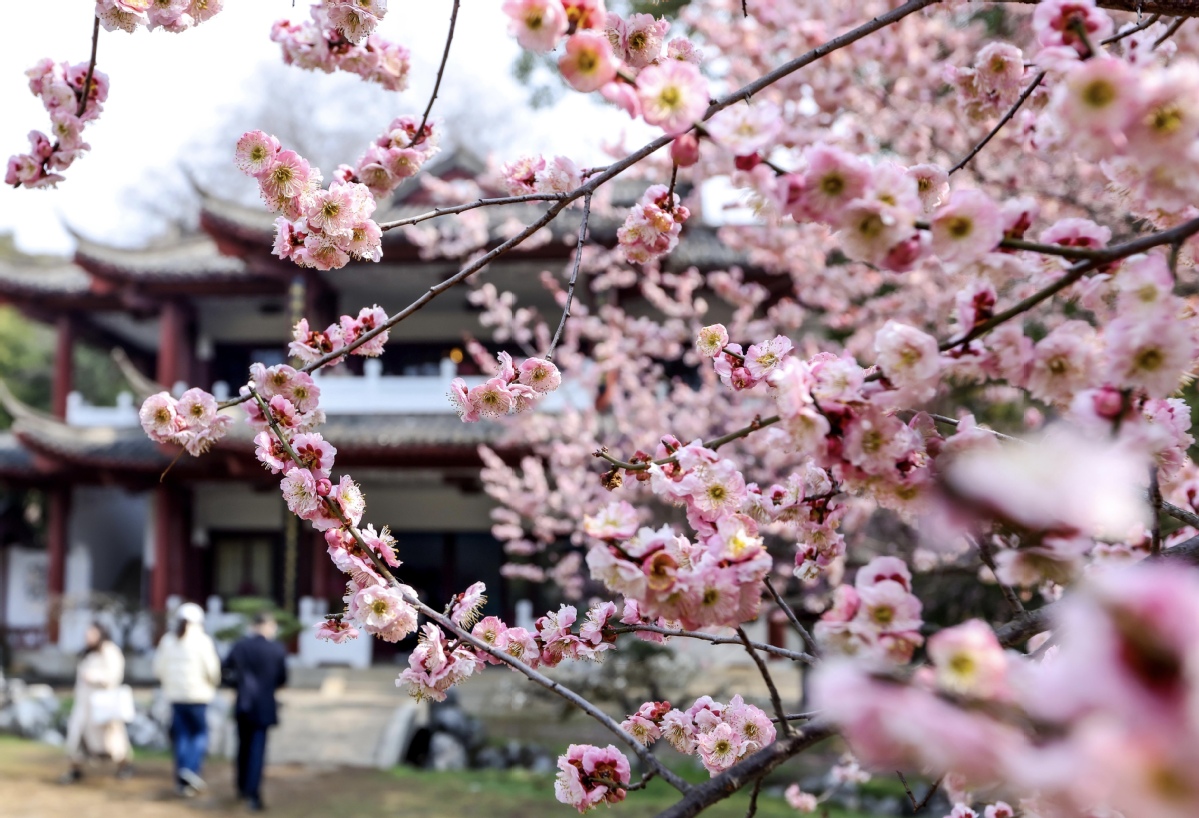 More than 20,000 plum trees bloom in the East Lake Plum Garden in Wuhan, Central China's Hubei province, in the spring, attracting tourists from all over the country to visit and appreciate the plum. [Photo by Zhao Jun/chinadaily.com.cn]