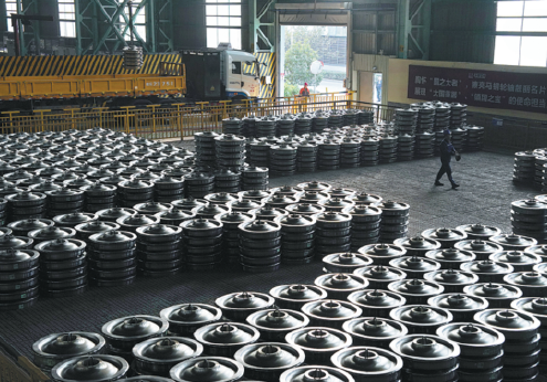 Employees from China Baowu Steel Group Corp work at an intelligent digital tire factory in Maanshan, Anhui province, in November. [GAVIN BARKER/SPORTS INC]
