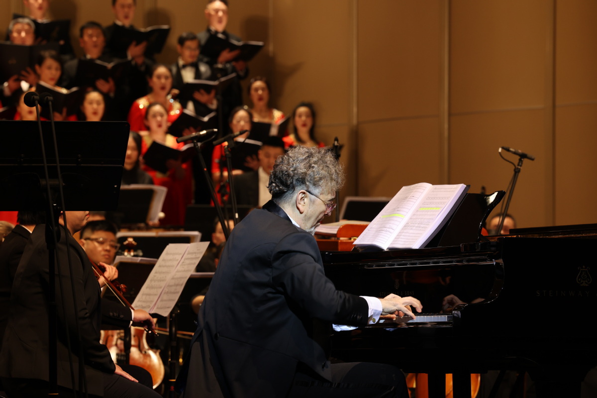 A concert featuring Love for China, composed and conducted by Flemish pianist Peter Ritzen and performed by the Chongqing Symphony Orchestra, was staged at Chongqing's Guotai Art Center on Feb 22, 2023. [Photo provided to chinadaily.com.cn]