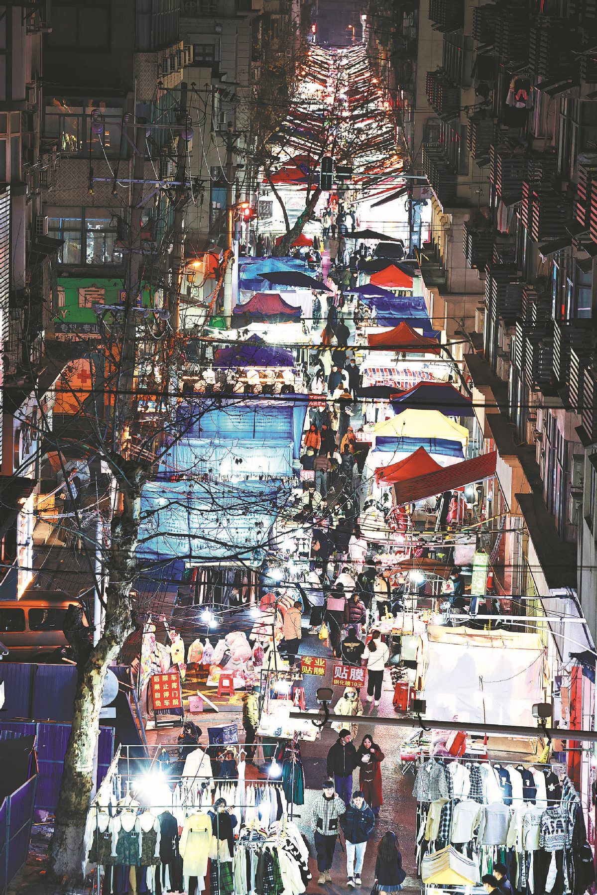 Residents stroll through Baochenglu Night Market on Feb 23. ZHU XINGXIN/CHINA DAILY