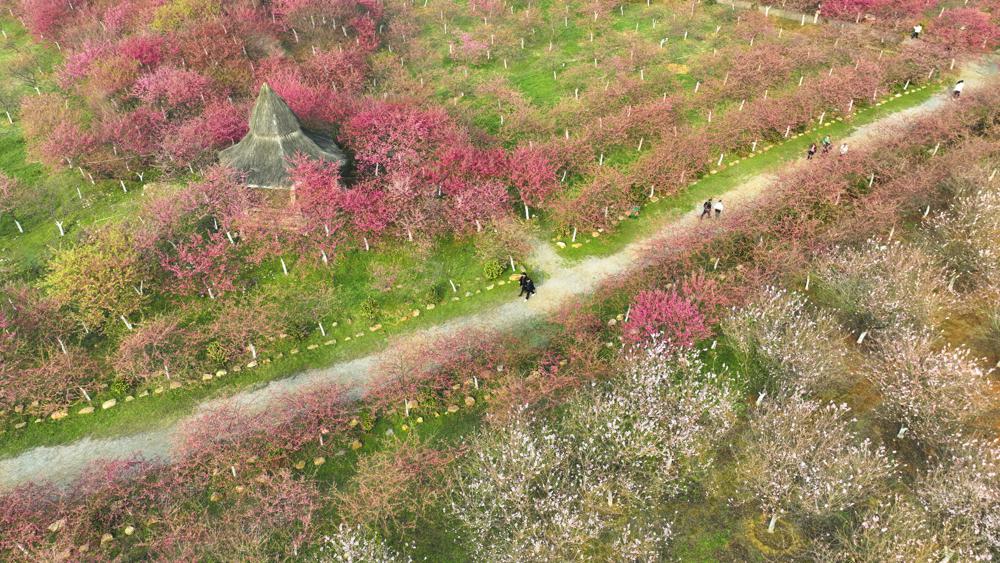 Cherry trees blossom at a park in Luoqiao town, Changning, Hunan province, attracting many tourists. [Photos by Zhou Xiuyuchun/For chinadaily.com.cn]