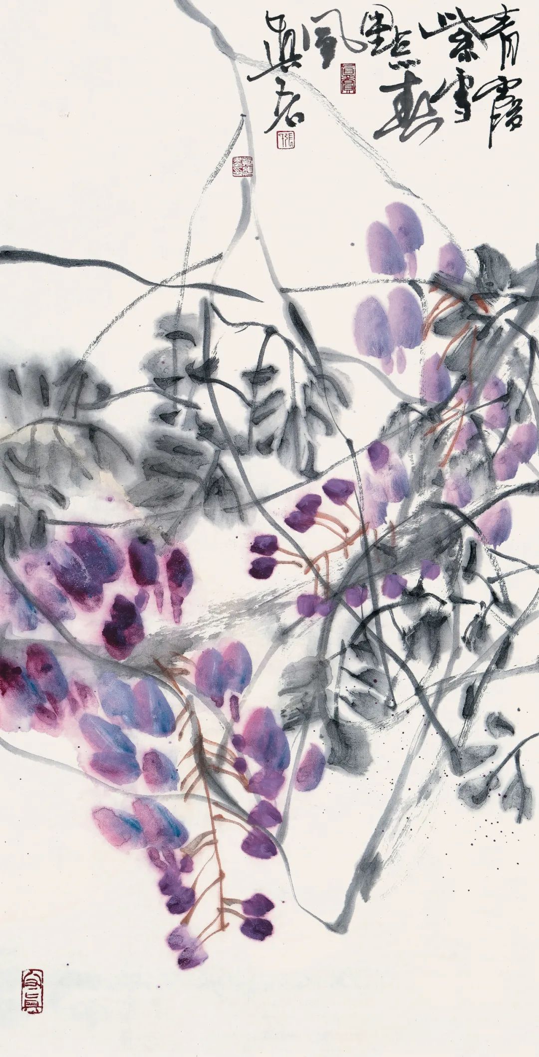 Ink paintings of birds and flowers drawn by Zhang Zhenwu are on display at the Shenzhen Art Museum in Guangdong province. [Photo/Official WeChat account of the Shenzhen Art Museum]