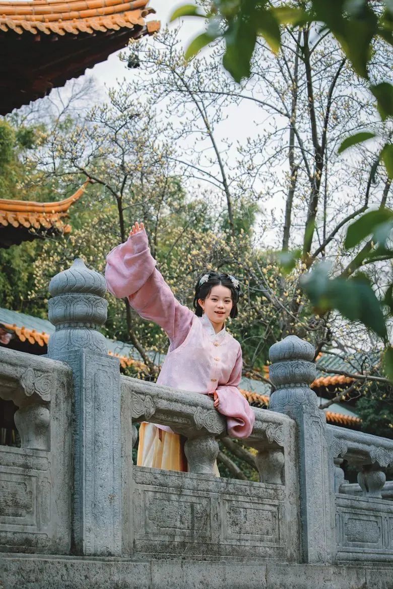 , a traditional Chinese style of clothing, visits the Chaotian Palace in Nanjing, Jiangsu province. [Photo/IC]