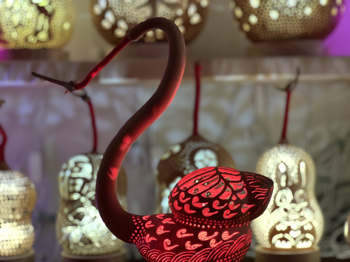 A gourd lamp made by Liu Mingzhu [Photo by Wang Jinzhong/For chinadaily.com.cn]