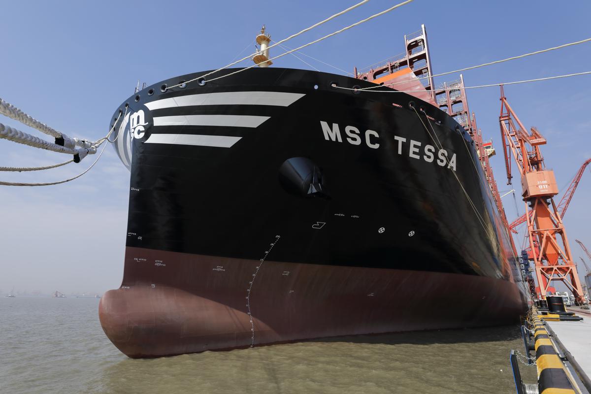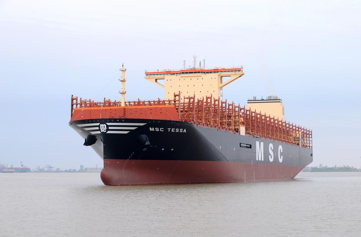 Named MSC Tessa, the mega boxship is the first of four 24,116-TEU container vessels ordered by Mediterranean Shipping Company.