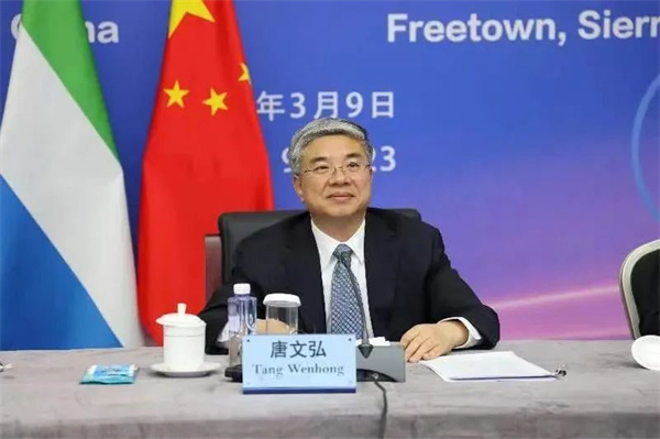 The emergency food assistance provided by China was handed over to Sierra Leone at a ceremony held both online and onsite on March 9, 2023. Tang Wenhong, vice-chairman of the China International Development Cooperation Agency (CIDCA), and Theresa Dick, deputy minister of the Agriculture and Food Security of Sierra Leone, attended and addressed the ceremony.