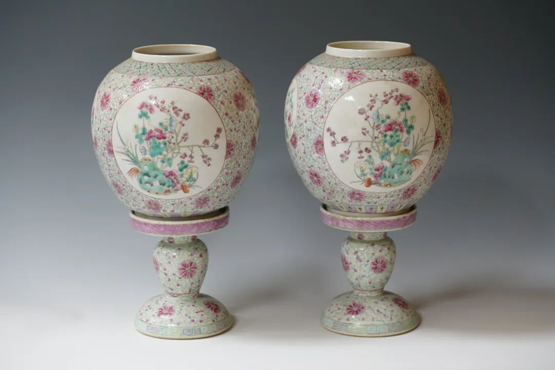 Famille-rose palace lamps with floral patterns, Qing Dynasty, from the collection of the Huzhou Museum [Photo/Official WeChat account of the Yangzhou Museum]