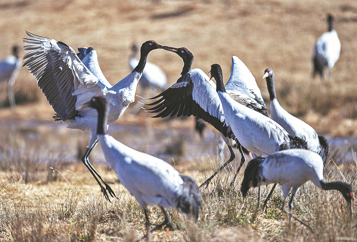 Wu Heqi, an associate researcher at the Kunming Institute of Zoology of the Chinese Academy of Sciences, said that black-necked cranes fly from Bhutan to the Tibet autonomous region in spring to breed and return to Bhutan to winter, so collecting information about habitats and their conservation status in China and sharing this between two countries is important to the species.