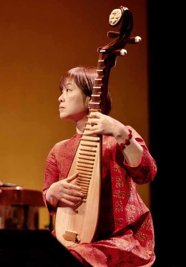 Wu Man at the ceremony of the Asia Society's Asia Arts Game Changer Awards in New York on March 8. [Photo provided to China Daily]