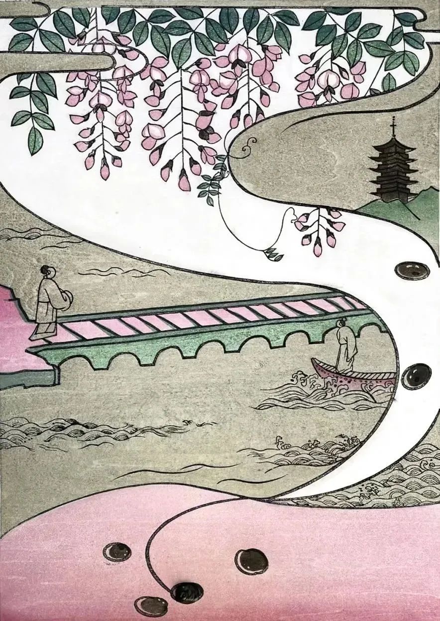A woodblock print by Qiao Lanrong depicts wisteria. [Photo/Official WeChat account of the Suzhou Museum]