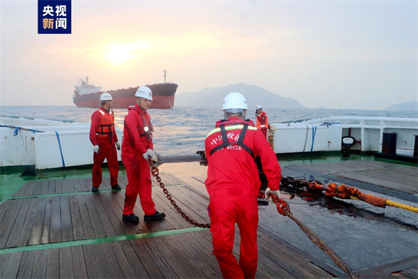 The rescue vessel arrived at the scene on the afternoon of March 4. After more than four hours of collaborative work, the two vessels were properly connected and the towing began.