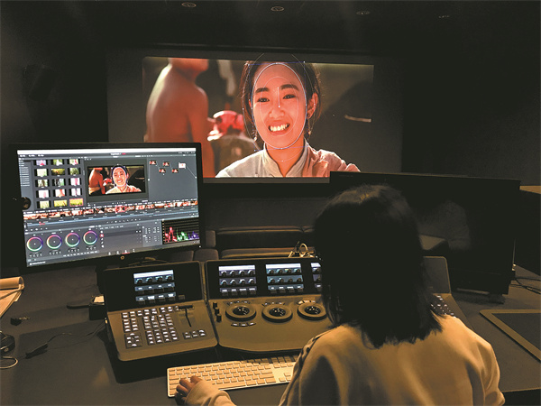 A restorer at the China Film Archive works on footage of actress Gong Li's 1988 classic Red Sorghum.[Photo/Courtesy of the China Film Archive]