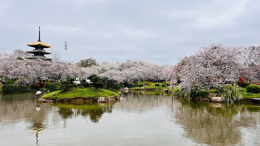 Flowering cherry blossoms abundant in East Lake scenic area in Wuhan