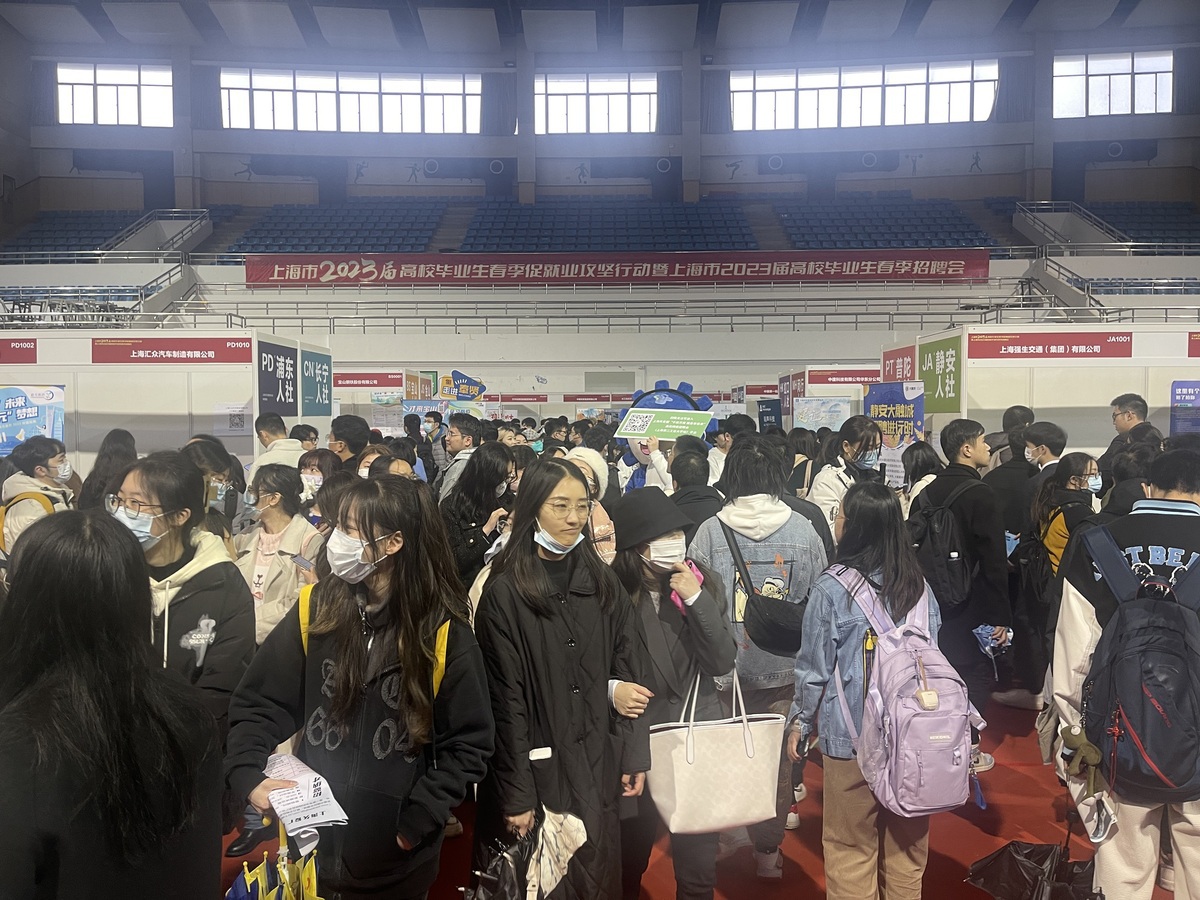 College graduates attend the 2023 Shanghai graduates spring recruitment fair, March 17, 2023. [Photo by He Qi/chinadaily.com.cn]