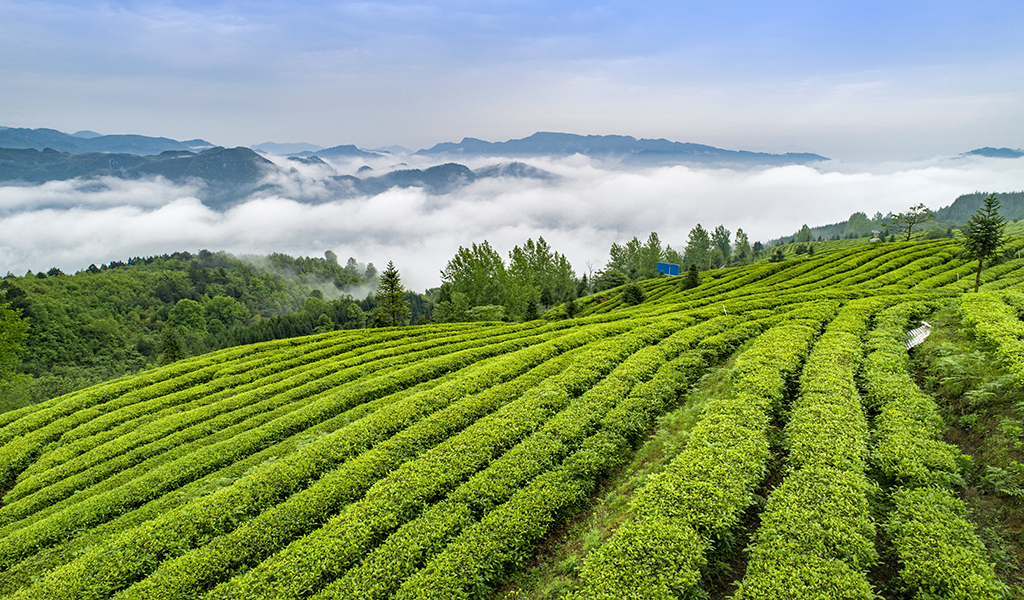 Beautiful tea mountain of Dunyun Maojian in Maojian town, Duyun, Guizhou province is shrouded in mist. [Photo/Dunyuan Convergence Media Center]