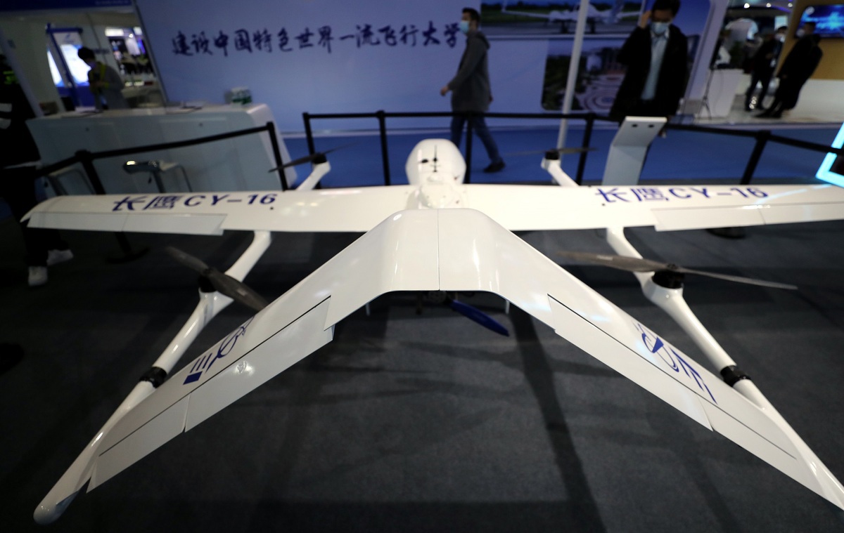 The CY-16 flight verification drone on display at the exhibition, March 23, 2023. [Photo by Zhang Wei/chinadialy.com.cn]