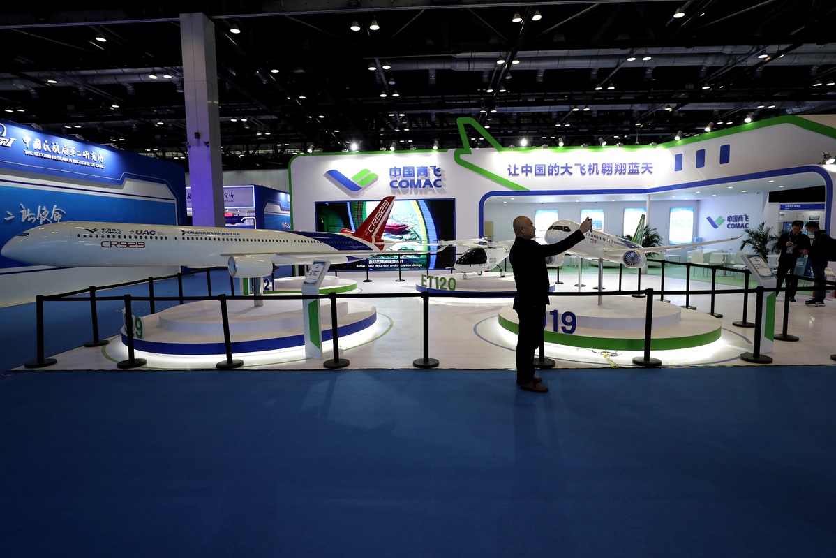 China Commercial Aircraft Co Ltd exhibits models of the CR929 and C919 aircraft at their booth, March 23, 2023. [Photo by Zhang Wei/chinadialy.com.cn]