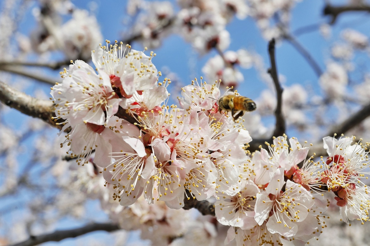 Apricot trees bloom in Waiyu village in Xintai, Shandong province, nurturing hopes of a good harvest. [Photo by Chen Yang/For chinadaily.com.cn]