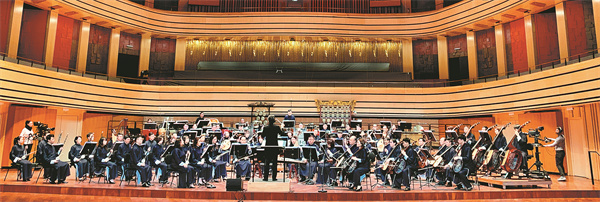 Yan Huichang (center) conducts the Hong Kong Chinese Orchestra at the 2020 Grand Chinese New Year Concert at Mupa Budapest in Hungary. The performance was broadcast live across the world.[Photo provided to China Daily]