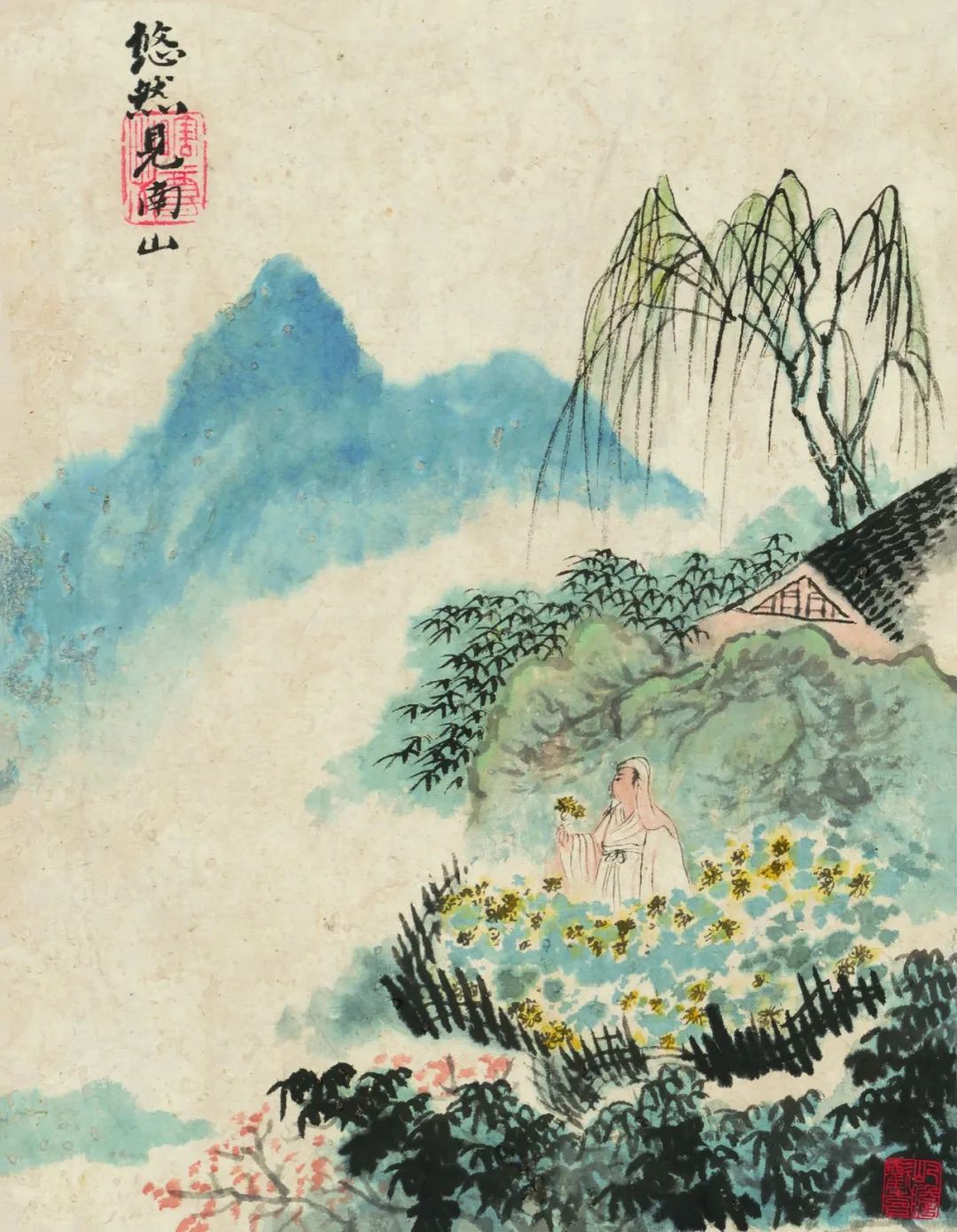 Illustration to a poem by Tao Yuanming, Shitao, Qing Dynasty, ink and color on paper, from the collection of the Palace Museum [Photo/Official WeChat account of the Art Gallery of the Beijing Fine Art Academy]