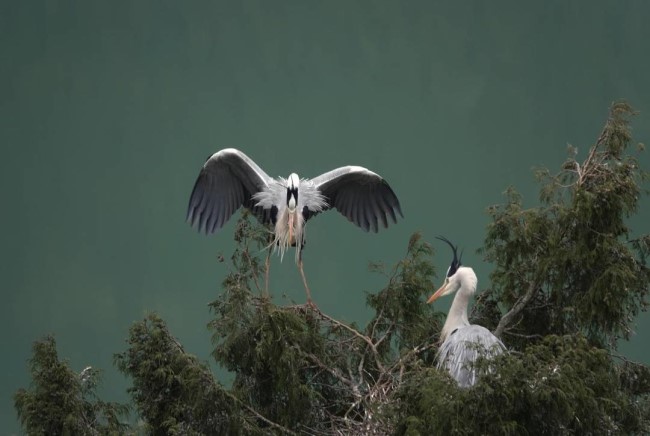 As temperatures rise, flocks of herons return to Jialing River in Jiange county, Guangyuan, Sichuan province, building nests in the cypress trees by the river.